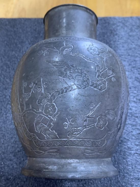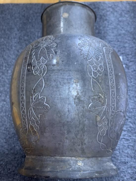 โถโบราณ แกะสลัก เนื้อโลหะ คล้ายๆเนื้อเงิน ขนาด กว้าง 4 นิ้ว สูง 5.5 นิ้ว สวยๆ ไม่ทราบที่ ใครรู้จัดไปครับ |