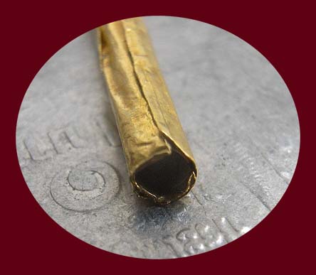 ตะกรุดสาริกา เนื้อทองคำเก่าหนา ยาว 1.7 ซม. หนัก 0.29 กรัม