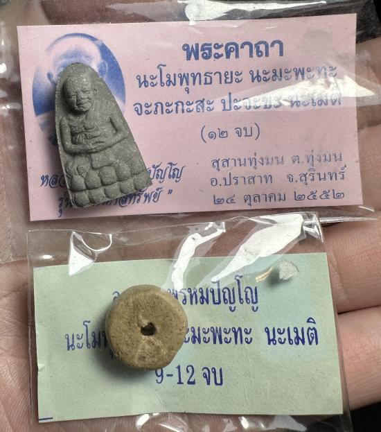 หลวงปู่หงษ์ พระผงปฐวีธาตุ รุ่นนังบัว รุ่นแรกที่หลวงปู่พิมพ์นั่งฐานบัว และ ลูกกรอง ปี 2546 พร้อมซอง จำนวน 2 รายการ