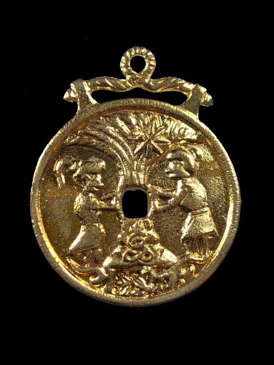 ลักษณะ: เป็นเหรียญกลม มีรูปคนหันหน้าเข้าหากัน