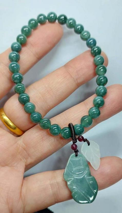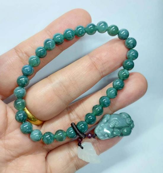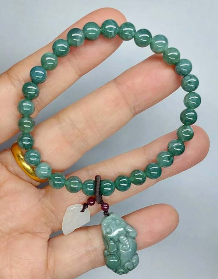 ***วัดใจ***สร้อยข้อมือ หยกพม่า พร้อมจี้ปี่เซี๊ยะ เม็ด 6 มิล สวยๆ |