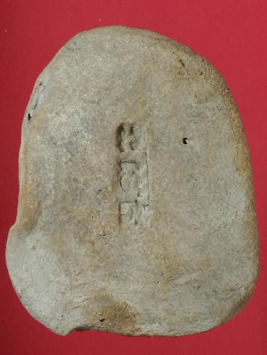 พระผงรูปเหมือนปฐวีธาตุ หลวงปู่หงษ์ พรหมปัญโญ วัดเพชรบุรี(สุสานทุ่งมน) จ.สุรินทร์ ด้านหลังปั๊ม นะเมติ