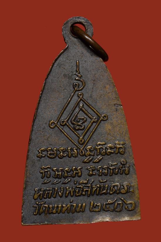 เหรียญปั๊มพิมพ์เตารีดเล็ก หลังหนังสือ หลวงพ่อสีทันดร วัดนาท่วม จ.ตรัง ปี 2506 นิยมมีหูมีเม็ดตา