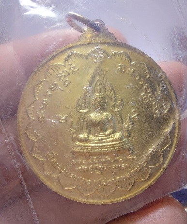 ด้านหลังเป็นพระรูปของ พระสัพพัญญูเจ้า พระประธานในพระอุโบสถวัดสุปัฏนารามวรวิหาร ซึ่งเป็นพระพุทธรูปที่ศักดิ์สิทธิ์ยิ่งองค์หนึ่งในจังหวัดอุบลฯ มีอักขระขอมติดองค์พระว่า อะ อุ มะ อะ คือ อะระหัง แปลว่า ผู้ไกลจากกิเลสซึ่งหมายถึงพระพุทธเจ้า อุ คือ อุตตมะธัมโม หมายถึง พระสัจธรรมอันเลิศเมื่อพระพุทธองค์ตรัสออกมาแล้วย่อมเป็นหนึ่งไม่มีสอง และ มะ คือ มหาสังโฆ แปลว่า พระสงฆ์หมู่ใหญ่ |