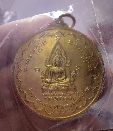 ด้านหลังเป็นพระรูปของ พระสัพพัญญูเจ้า พระประธานในพระอุโบสถวัดสุปัฏนารามวรวิหาร ซึ่งเป็นพระพุทธรูปที่ศักดิ์สิทธิ์ยิ่งองค์หนึ่งในจังหวัดอุบลฯ มีอักขระขอมติดองค์พระว่า อะ อุ มะ อะ คือ อะระหัง แปลว่า ผู้ไกลจากกิเลสซึ่งหมายถึงพระพุทธเจ้า อุ คือ อุตตมะธัมโม หมายถึง พระสัจธรรมอันเลิศเมื่อพระพุทธองค์ตรัสออกมาแล้วย่อมเป็นหนึ่งไม่มีสอง และ มะ คือ มหาสังโฆ แปลว่า พระสงฆ์หมู่ใหญ่ |