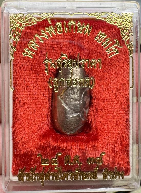 ลูกสะกด สุริยุปราคา หลวงพ่อเกษม ปี 2538 แจก กรรมการ เนื้อปรอทเงิน (หรือชินปรอท) พร้อมกล่องเดิม |