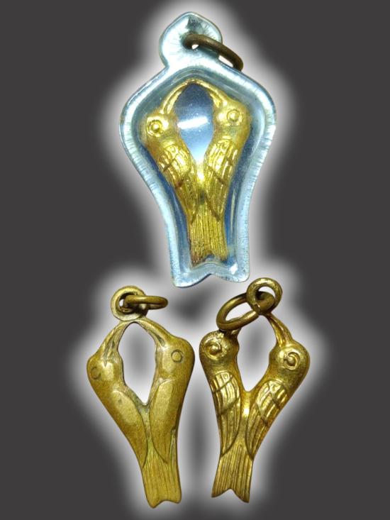 A6401.เครื่องรางของขลัง นกสาริกา ยกเซ็ต 3 ชิ้น เลี่ยมเดิม 1 ชิ้น เคาะเดียวเเดง