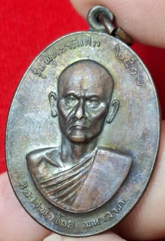 เหรียญมหาลาภ หลวงพ่อโกย วัดพนัญเชิง จ.อยุธยา ปี2517 เป็นเหรียญเนื้อทองแดง สภาพสวยมากๆพื้นผิวเหรียญยังออกเป็นสีรุ้งๆอยู่เลยนะครับ |