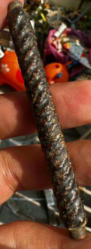 ตะกรุดสายสะพานสูงลงรักกลิ้งผงลงรักอีกทีรักออกดำอมแดงเก่าครับ |