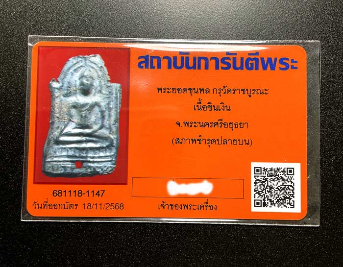 พระยอดขุนพล กรุวัดราชบุรณะ เนื้อชินเงิน สภาพตามบัตร ตามรูปครับ