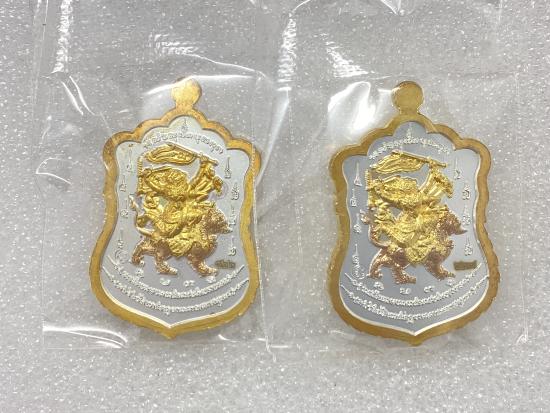 เคาะเดียวแดง 150 ( 2 เหรียญ ) เหรียญรูปเหมือน หลังหนุมาน8กรขี่สิงห์ รุ่น มหาเศรษฐี๘๐ หลวงพ่อเอื้อน วัดวังแดงใต้ จ.พระนครศรีอยุธยา เนื้อโลหะชุบ สามกษัตริย์ กล่องเดิม |