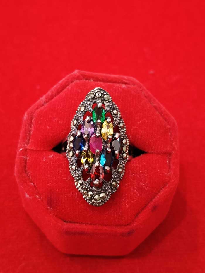 แหวนผู้หญิง ฝังพลอยกับแมกกาไซด์ นน.รวม 4.2 กรัม size 53-54