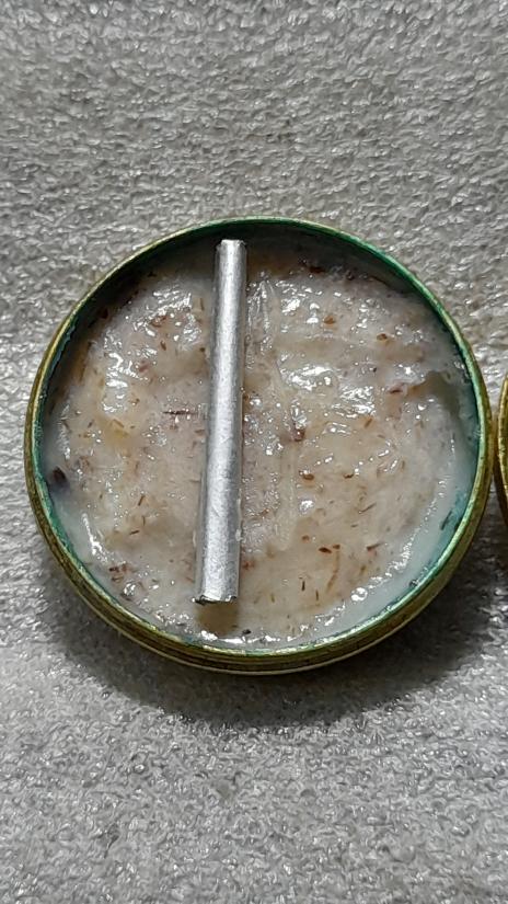 วัดใจเคาะเดียว........150....... ตลับสีผึ้งพังพระกาฬ ฝังตะกรุดเงิน + รอยจาร + โค๊ต + เลข ๘๒๓ สวย ไม่ทราบที่ |