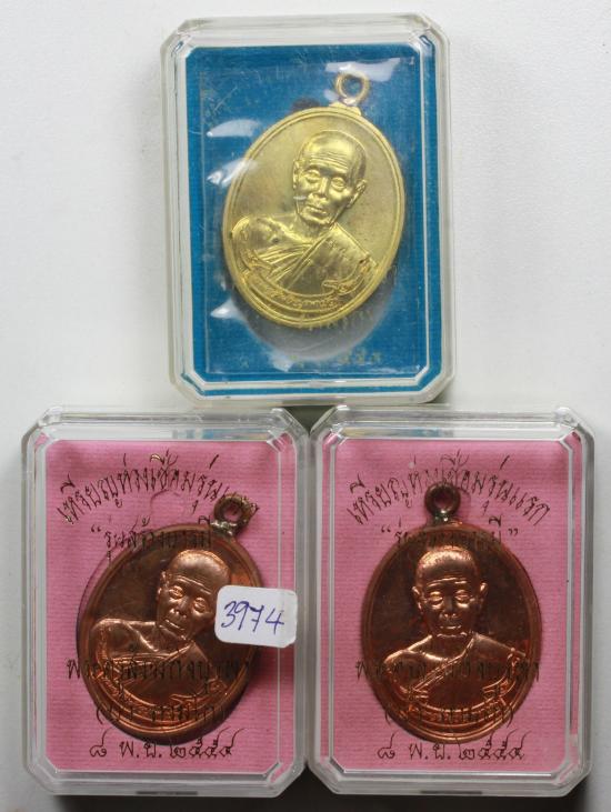 รายละเอียด เคาะเดียว 3องค์ เหรียญห่วงเชื่อมรุ่นแรก หลวงปู่บัว " เนื้อทองเหลือง1 เนื้อทองแดง 2
