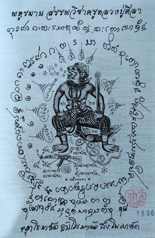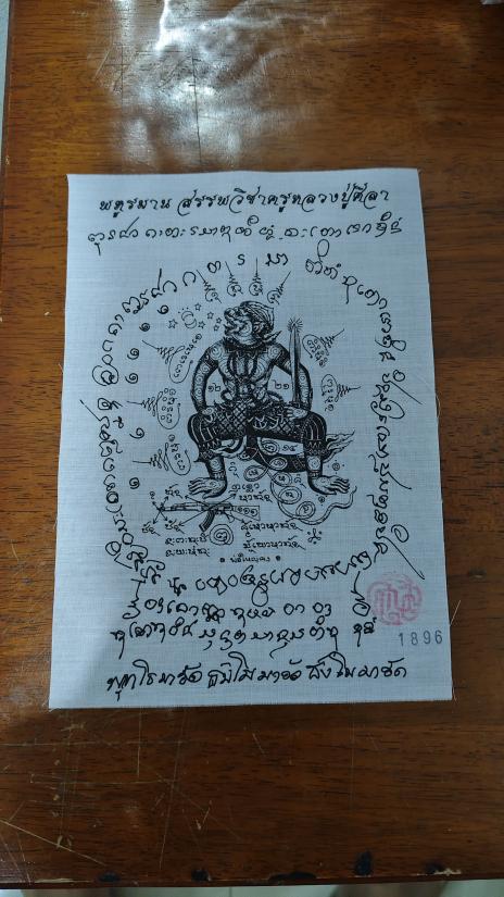 รายละเอียด ผ้ายันต์พหูรมานรุ่นแรก แจกในพิธี โดยหลวงปู่ศิลาปลุกเสก no.1896