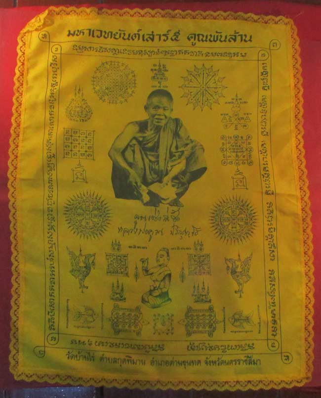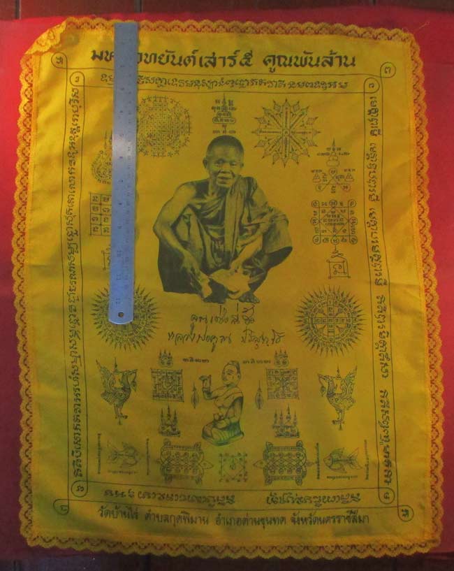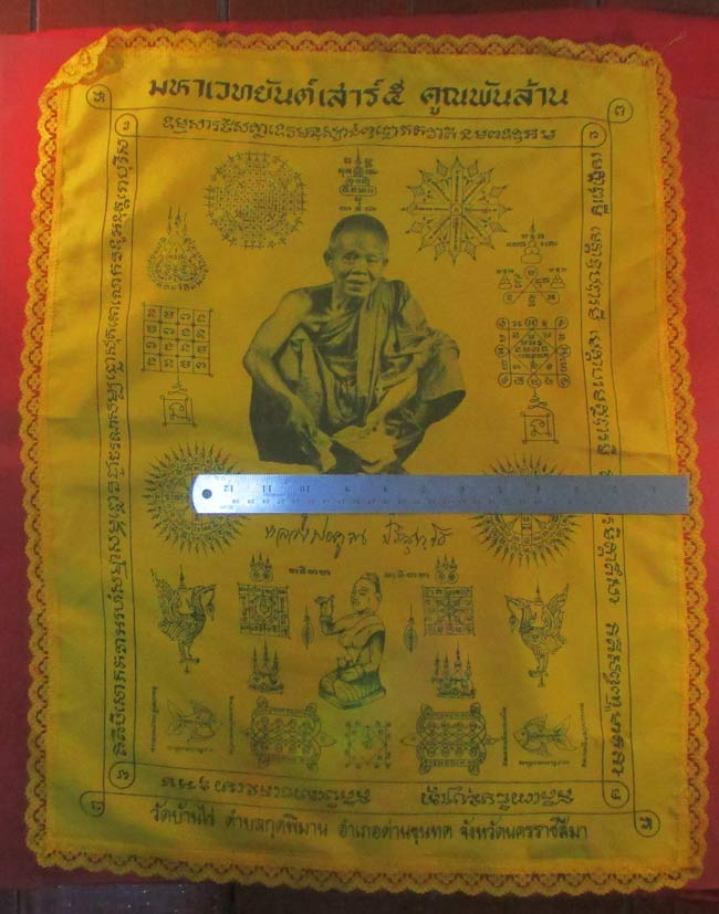 ผ้ายันต์ มหาเวทยันต์เสาร์ ๕ คูณพันล้าน หลวงพ่อคูณ วัดบ้านไร่ อ.กุดพิมาน อ.ด่านขุนทด จ.นครราชสีมา ครับ (พระบ้าน ครับ) |