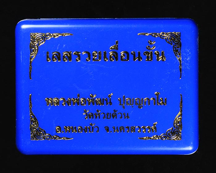 เลสหลวงพ่อพัฒน์ วัดห้วยด้วน จ.นครสวรรค์ รุ่น รวยเลื่อนขั้น เนื้อทองทิพย์ลงยาน้ำเงินแดง