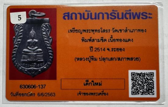 เหรียญหลวงพ่อโสธร วัดเขาสำเภาทอง พิมพ์ 3 ขีด พร้อมบัตรสภาพสวย