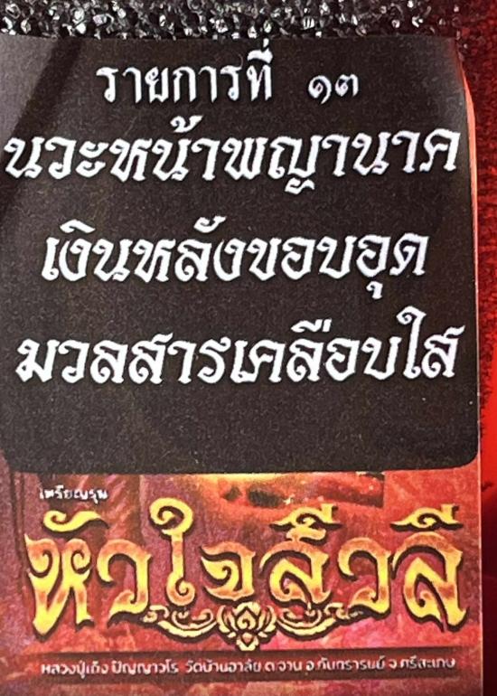 ชื่อพระเครื่อง หลวงปู่เถิง วัดบ้านอาลัย อำเภอกันทรลักษ์ จังหวัดศรีสะเกษ รุ่น หัวใจสิวลี เนื้อนวะโลหะ หน้ากากเงิน หลังอุดมวลสาร