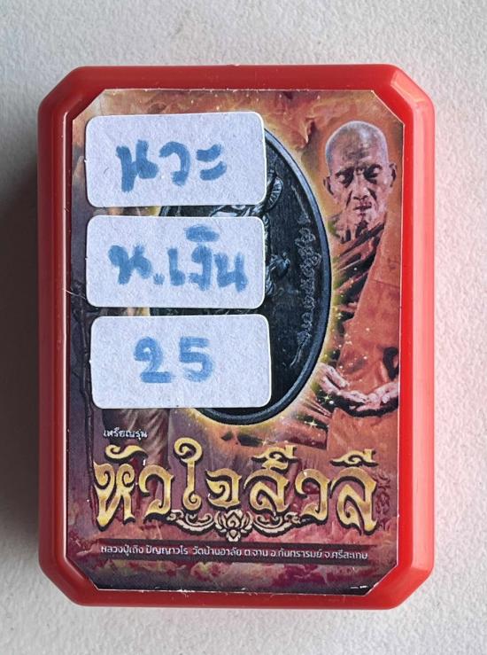 หลวงปู่เถิง วัดบ้านอาลัย อำเภอกันทรลักษ์ จังหวัดศรีสะเกษ รุ่น หัวใจสิวลี เนื้อนวะโลหะ หน้ากากเงิน หลังอุดมวลสาร