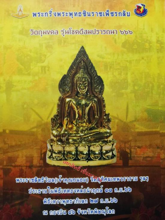 พระกริ่งพระพุทธชินราชอินโดจีน พิมพ์แต่ง(ขนาด บูชาหน้าตัก 3 นิ้ว) เนื้อทองเหลือง หน้าตักกว้าง 3 นิ้ว สูง 6 นิ้ว หมายเลข ๒๔๑ ราคาจอง ๒,๙๙๙ บาท ครบรอบ ๕๘ ปี กองบิน ๕๖ รุ่น โชคดีสมปรารถนา ๖๖ พระราชสิทธิวิ