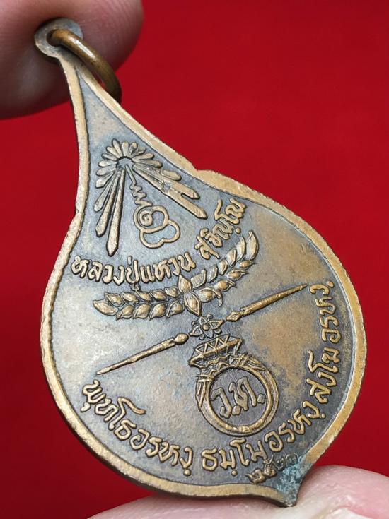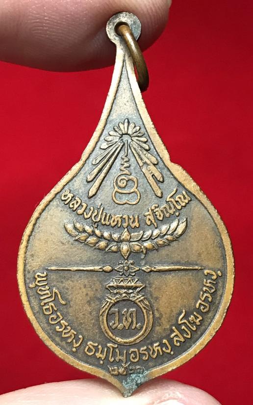 เหรียญหยดน้ำหลัง ว.ท. หลวงปู่แหวน สุจิณฺโณ วัดดอยแม่ปั๋ง อ.พร้าว จ.เชียงใหม่ ปี2521 เนื้อทองแดง |