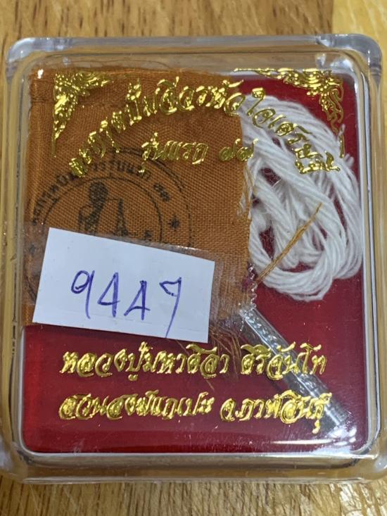 ชื่อพระเครื่อง เนื้อเงินกำลังขึ้น ตะกรุดปั้มจีวรหัวใจเศรษฐี รุ่นแรก 77 หลวงปู่ศิลา ศิริจันโท ยุคต้น จ.กาฬสินธุ์ เนื้อเงิน ได้ครบทั้ง 3 รายการ ตะกรุดเงิน ,จีวร ,สายสิญจน์ ตอกโค๊ด เลขสวย 9447 สวยมาก กล่องเดิมครับ