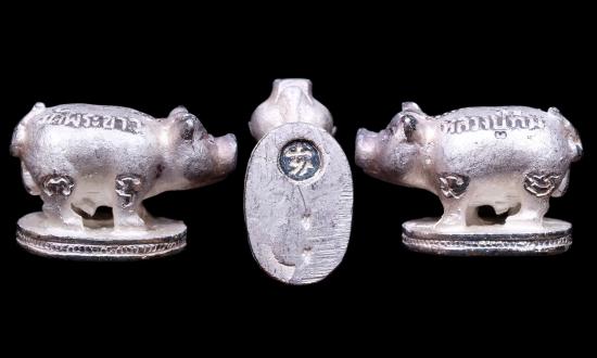 หมูคุ้มภัยมหาลาภ ปี 41 เนื้อเงิน หลวงปู่ทิม วัดพระขาว สวย แดงเคาะแรก