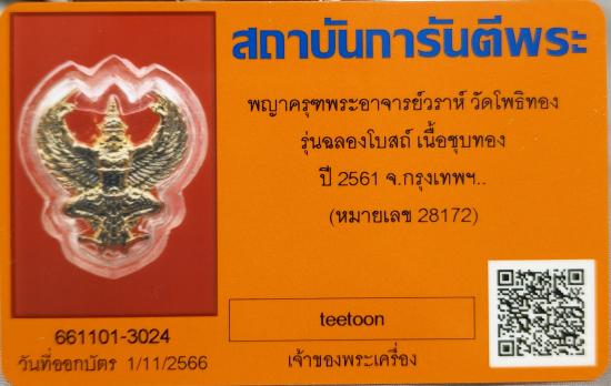 เคาะแรกแดง+ พญาครุฑ พระอาจารย์วราห์ วัดโพธิทอง รุ่นฉลองโบสถ์ เนื้อชุบทอง ปี2561 |