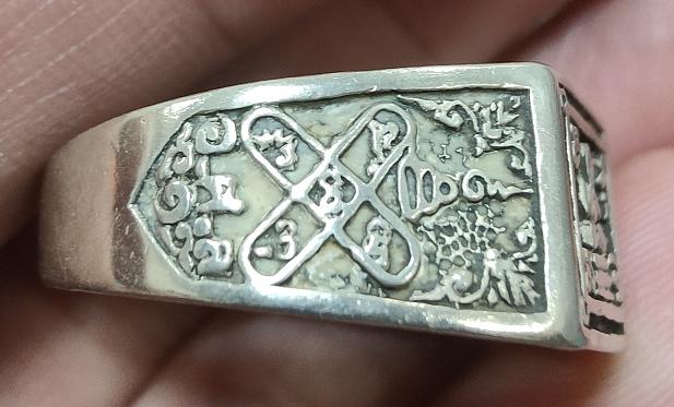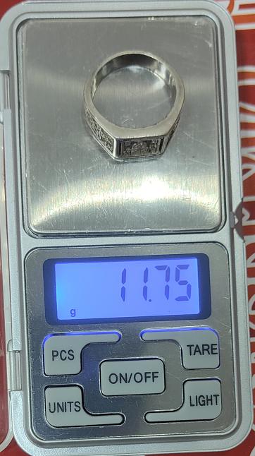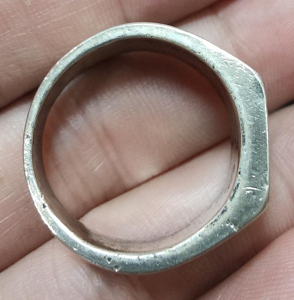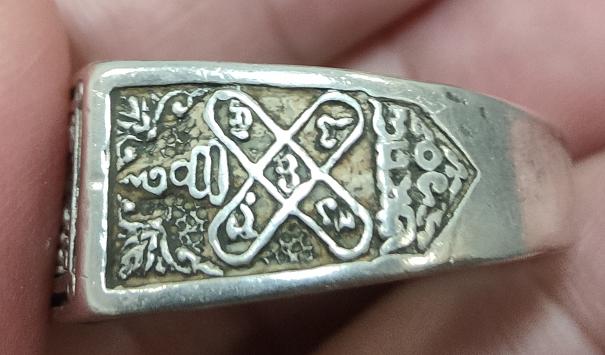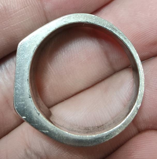 วัดใจ 100 แหวนพระปิดตา เนื้อเงิน น้ำหนัก 11.75 กรัม มีจาร 3 ตัว ไม่ทราบที่ เส้นผ่าศูนย์กลาง 2.1 ซม. เคาะเดียวแดง