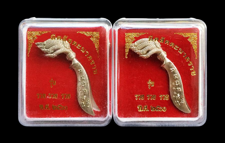 +!!เคาะเดียวllดง ตลอดสาย!!+ (รับ 2 องค์) มีดสัตตะนาคราช รุ่น รวย รวย รวย (พญานาค7เศียร) วัดถ้ำวังผาพญานาคราช จ.อุบลราชธานี ปี2560 ขนาดกว้าง 1.5 ซ.ม. สูง 6 ซ.ม. มีเลขโค้ดตามรูป พร้อมกล่องครับ
