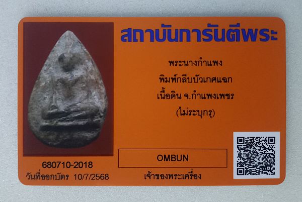 รายละเอียด +++ พระนางกำแพงกลีบบัว พิมพ์เกศแฉก เนื้อดิน กรุวัดบรมธาตุ จ.กำแพงเพชร + บัตร G-Pra +++