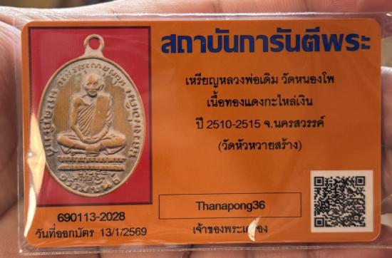*วัดใจ* เหรียญ หลวงพ่อเดิม วัดหนองโพ ออกวัดหัวหวาย เนื้อทองแดงกะไหล่เงิน ปี 2510-2515 จ.นครสวรรค์