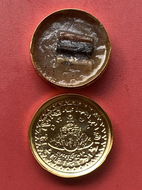 เนื้อ โลหะชุบทองลงยาสีดำขอบสีแดง ขนาด5ซม |