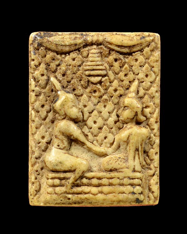 พิมพาแต่งงาน สัญลักษณ์นี่เป็นของสูงต้องแขวนคอเท่านั้น เพราะสร้างมาจากเจ้าชายสิทธัตถะ ทรงอภิเษกสมรสกับพระนางพิมพา จึงเรียกว่าพิมพาแต่งงาน สัญลักษณ์พิมพาแต่งงานของท่านก็ได้ทำไว้ที่ซุ้มประตูวัดแสนเกษมทั้งด้านนอกและด้านในด้วยครับ พุทธคุณครบเครื่องครับ ค้าขาย แคล้วคลาด เมตตา เสน่ห์แบบดลให้พบคนที่ดี ที่หมายปองครับ...เรื่องเหนียวๆแขวนพิมพาของท่านยิงไม่ถูก ยิงไม่ไม่เข้า ก็มีครับ
