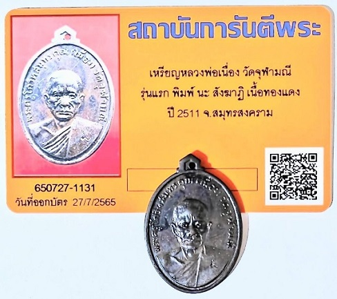 เหรียญหลวงพ่อเนื่อง วัดจุฬามณี 2511 นะ สังฆาฏิ มีรอยจาร