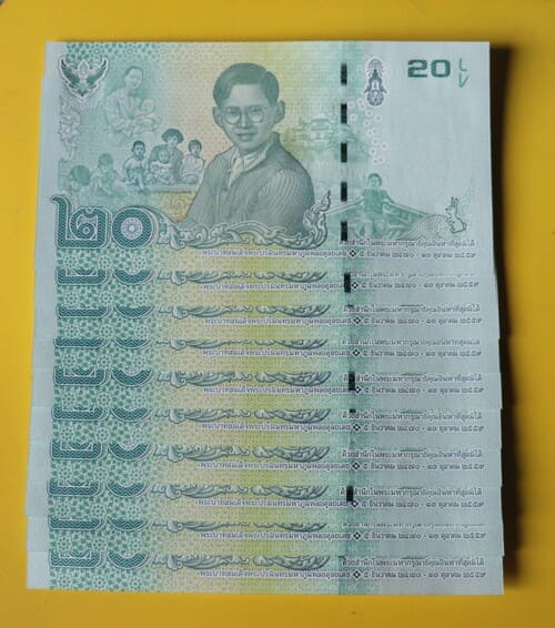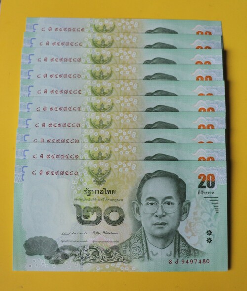 "เคาะเดียว" ธนบัตรแบงค์ 20 บาท แบบ 15,แบบ 16 และแบบ 16.5 เลขเรียงอย่างละ 10 ฉบับ unc |