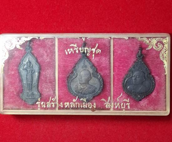 เหรียญหลวงพ่อแพ วัดพิกุลทอง จ.สิงห์บุรี ปี2525 เป็นรุ่นสร้างหลักเมือง ใน1ชุดจะประกอบไปด้วย3เหรียญ เป็นเหรียญเนื้อทองแดง สภาพสวยมากๆทุกเหรียญเลยนะครับ มีกล่องเดิมๆมาให้ด้วยนะครับ |
