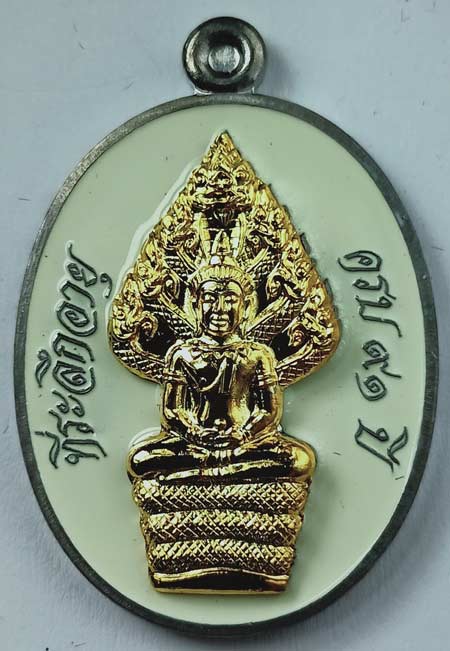 เหรียญนาคปรก หลวงพ่อคูณ มหาลาภ91 เนื้อชินตะกั่วหน้ากะไหล่ทองลงยาลงยาสีขาว เบอร์ 903 พร้อมกล่องครับ