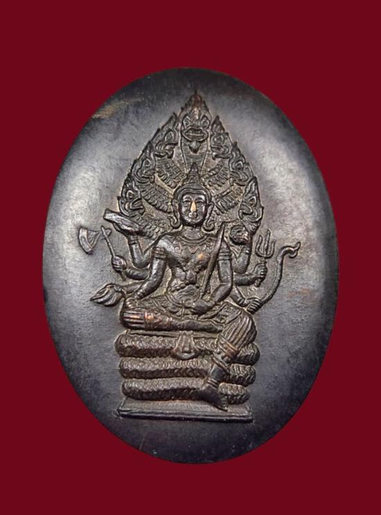 เหรียญนารายณ์ทรงสมุทร หลวงพ่อพรหม วัดขนอนเหนือ หลังยันต์สิงห์ ปี 28 เนื้อนวโลหะ ตอกโค๊ด "พรหม" ตอกเลข 62
