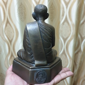 พระบูชาหลวงพ่อกวย พิมพ์ย้อนยุค ปี 2552 ขนาดหน้าตัก 5 นิ้ว ใต้ฐานมีเหรียญหลวงพ่อกวย ย้อนยุค ปี 2539