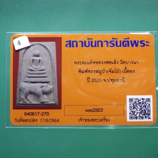 พระสมเด็จ (จัมโบ้) หลวงพ่อเส็ง วัดบางนา พิมพ์ทรงหมูป่า จ.ปทุมธานี ปี 2525....P4 ...68.4.15