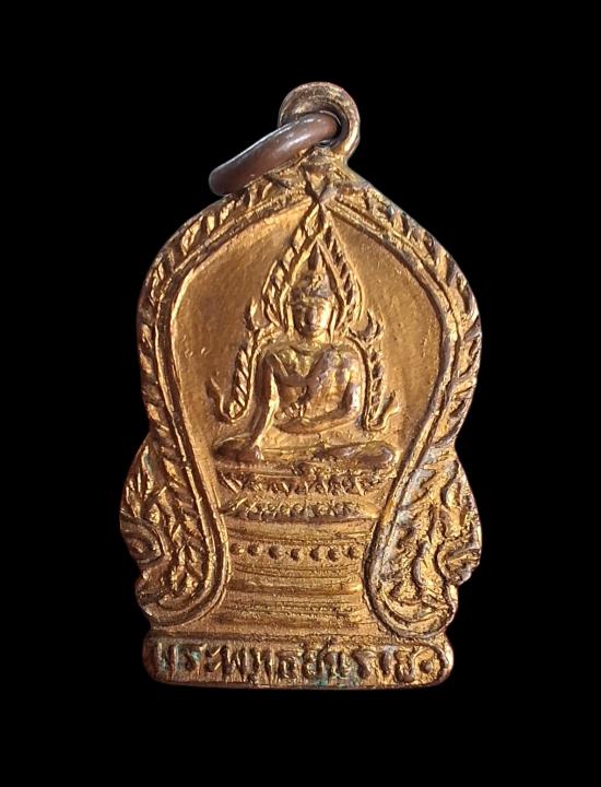 เหรียญพระพุทธชินราช วัดเศวตฉัตร เนื้อทองแดงกะไหล่ทอง ห่วงเดิม ปี2493 จ.กรุงเทพฯ |