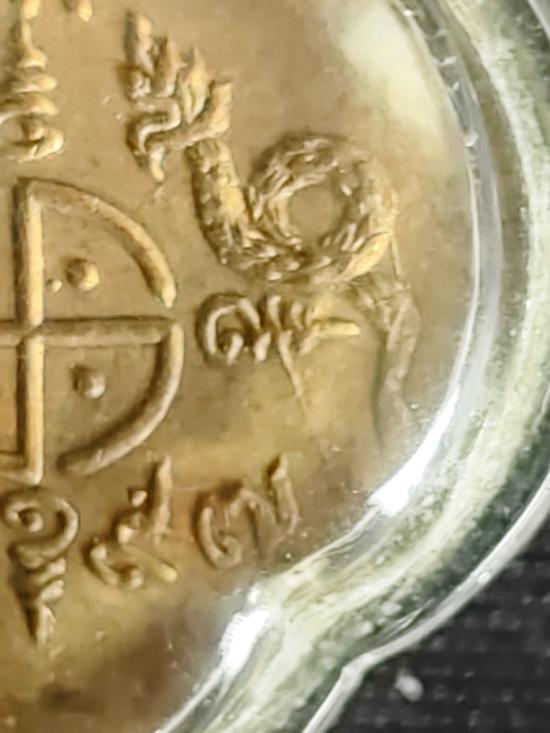 เหรียญหลวงพ่อโอภาสี อาศรมบางมด พิมพ์พุ่มข้าวบิณฑ์ เนื้อทองแดงกะไหล่ทอง ปี 2497 |