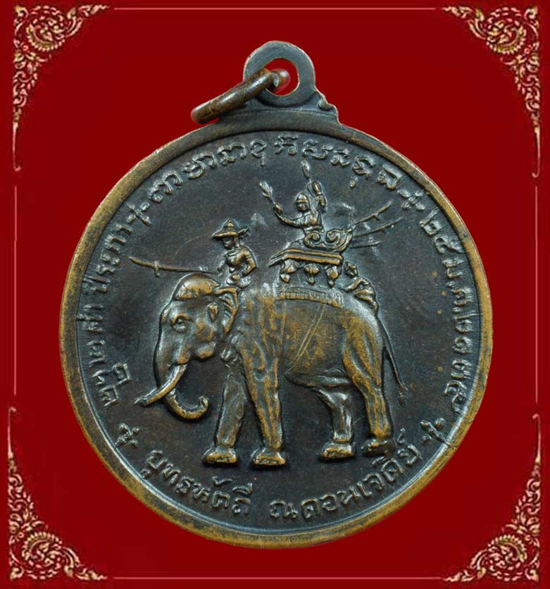 วัดใจ...เหรียญสมเด็จพระนเรศวร ยุทธหัตถี จ.สุพรรณบุรี ปี2513 พิมพ์นิยม 3ดาบ มีก้อนเมฆ เนื้อทองแดง สวยคม ผิวเดิมๆ ครับ. |
