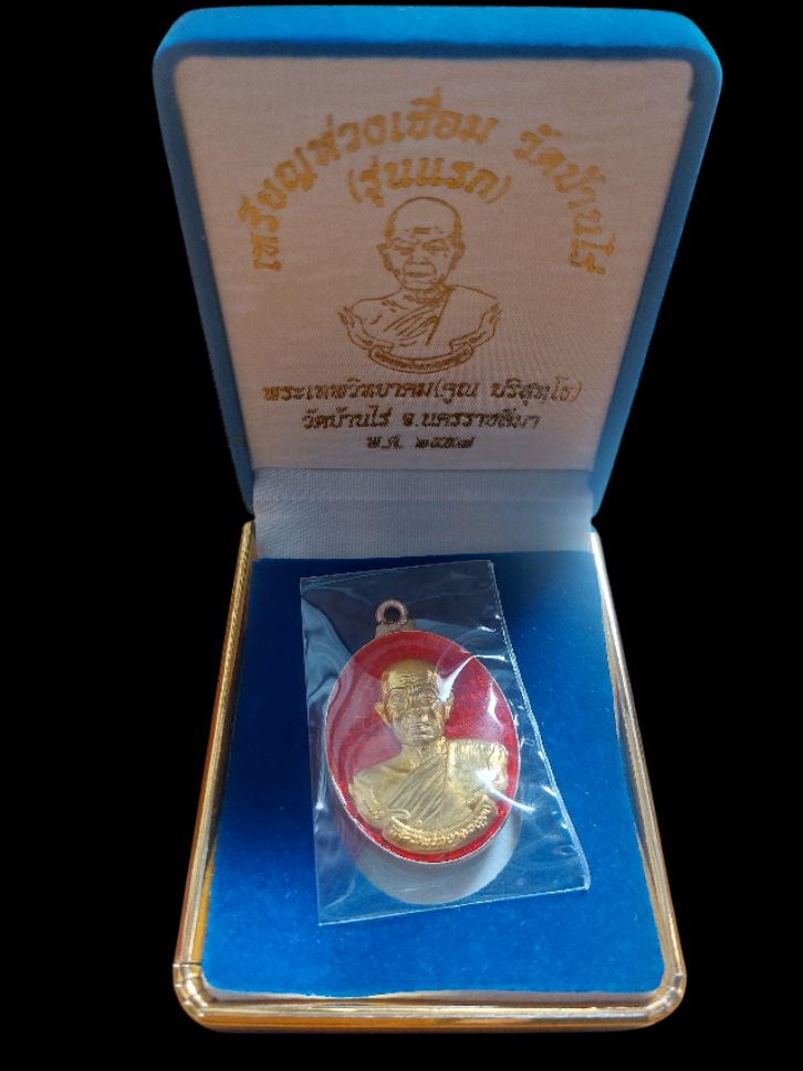 เหรียญห่วงเชื่อม หลวงพ่อคูณ ปริสุทโธ วัดบ้านไร่ เนื้อเงินลงยาหน้าทองคำ หมายเลข ๓๒ เคาะเดียวแบ่งปัน