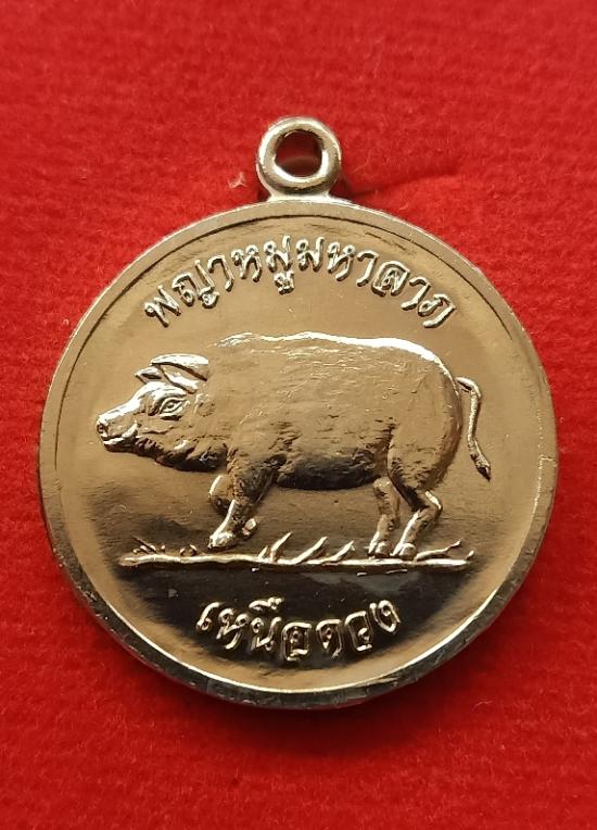 หลวงปู่มหาศิลา สิริจันโท ธรรมอุทยาน จ.กาฬสินธุ์ พญาหมูมหาลาภ รุ่น เหนือดวงหลังยันต์ขวัญถุง เนื้ออัลปาก้า |