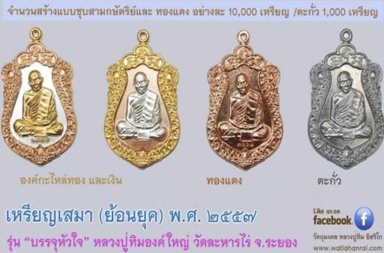 เหรียญเสมา ย้อนยุค หลวงปู่ทิม ปี57 รุ่นบรรจุหัวใจ " วาระแรก " เลขสวย 9555 เนื้อ 3 K กะไหล่ เงิน ทอง นาค |