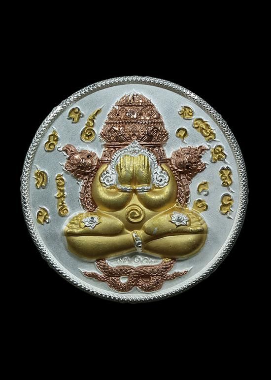 เหรียพระปิดตาพังพระกาฬ รุ่นเจ้าสัวพันล้าน จัดสร้างโดยบอย ท่าพระจันทร์ เนื้อ3K พื้นเงิน |