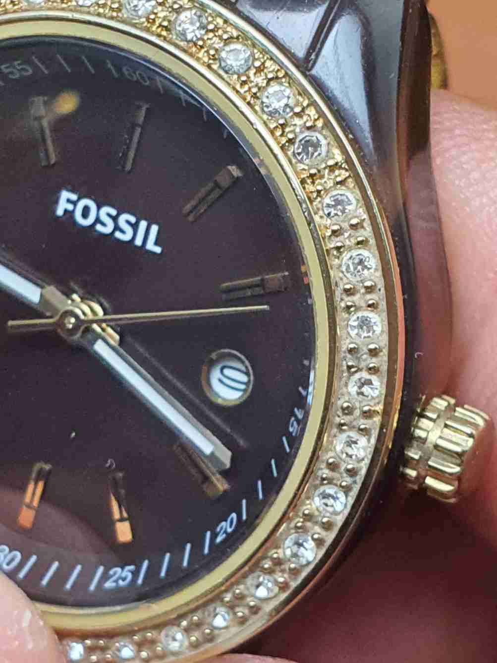 นาฬิกา Fossil ES2922 Woman สายอะคริลิค ลายกระสีน้ำตาล หน้าปัดประมาณ 3 ซม ใช้งานได้ปกติ เดินได้ปกติ |